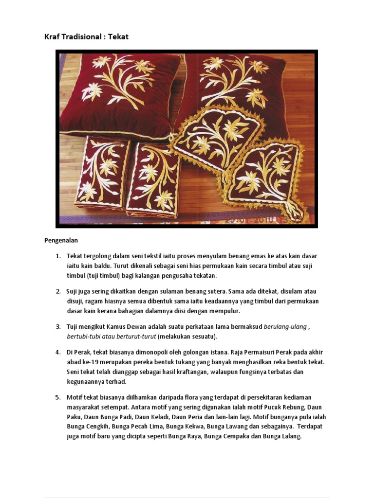A timbul benang emas b gubah c baldu 4 Motif bunga pecah lima. Apakah jenis seni tekat ini. Scribd is the worlds largest social reading and publishing site.